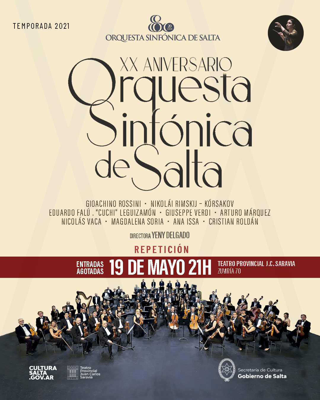 El miércoles 19 a las 21 horas, la Orquesta Sinfónica de Salta repondrá el concierto que había sido programado para el jueves 6 del corriente y que fuera suspendido por activarse el protocolo de emergencia sanitaria.