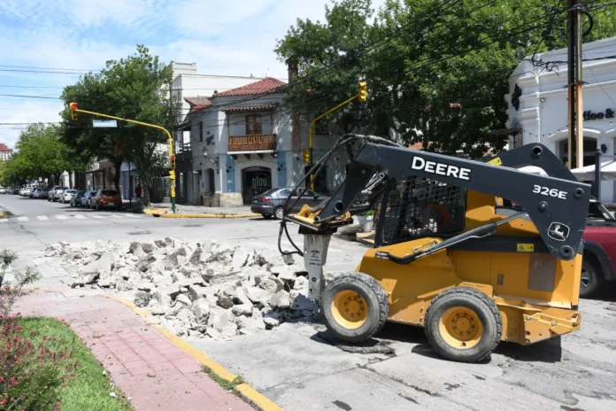 Se trabaja actualmente en la demolición de las placas dañadas entre Juramento y Av. Bicentenario, sentido hacia el centro. La colocación del nuevo material asfáltico ya se concretó en la otra mano, sentido oeste – este, frente al ex colegio Nacional.