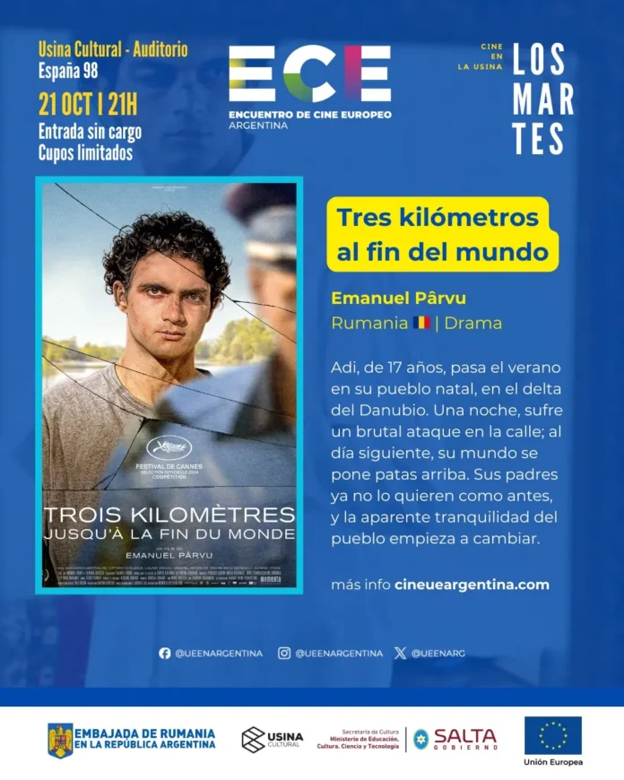 La XXI edición del Encuentro de Cine Europeo en Argentina (ECE), es organizado por la Unión Europea y socios locales, bajo el lema “Miradas que nos acercan, historias que nos transforman”. Se realiza a lo largo de este mes, con producciones de 17 países de la Unión, y funciones presenciales en 11 ciudades del país, entre las que se encuentra Salta.