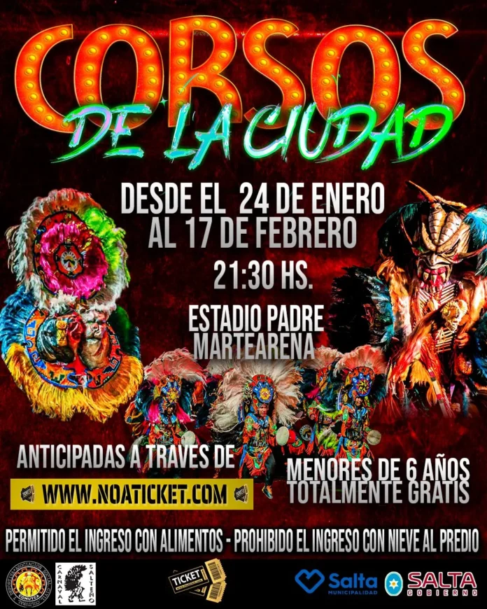 La fiesta carnestolenda en la capital salteña iniciará con los desfiles el sábado 24 desde las 21.30 en la avenida colindante al estadio Martearena. Se extenderán hasta el 17 de febrero. El público disfrutará de las mejores agrupaciones, comparsas, murgas, caporales y carrozas.