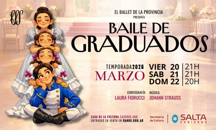 El Ballet de la Provincia de Salta inaugurará su Temporada Artística 2026 con la obra “Baile de Graduados”, un ballet clásico en un acto con coreografía de Laura Fiorucci, que se presentará del 20 al 22 de marzo en la Sala Juan Carlos Dávalos de la Casa de la Cultura.