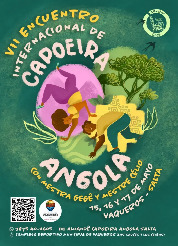 Vaqueros se prepara para recibir una nueva edición de uno de los eventos más destacados de la disciplina en la región con la realización del VII Encuentro Internacional de Capoeira Angola, que tendrá lugar los días 15, 16 y 17 de mayo de 2026 en el Complejo Deportivo Municipal, ubicado en la intersección de Los Sauces y Los Ceibos.